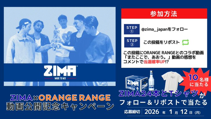 賞品:ZIMA 24本 と オリジナルTシャツ(10名様)
