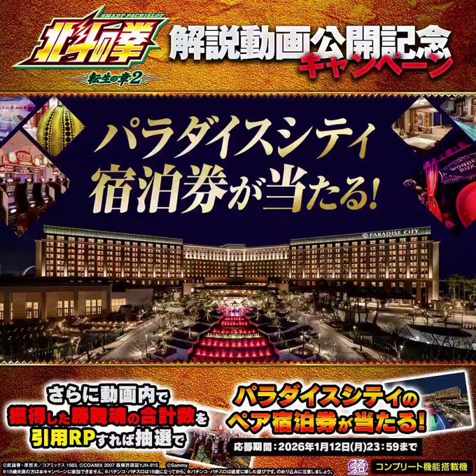 パラダイスシティ宿泊券(1組・最大2名)が当たるキャンペーンも同時開催🎊