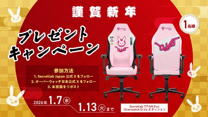 @secretlab_JP @jpPlayOverwatch をフォロー&キャンペーン対象ポストをリポストしてご応募ください。