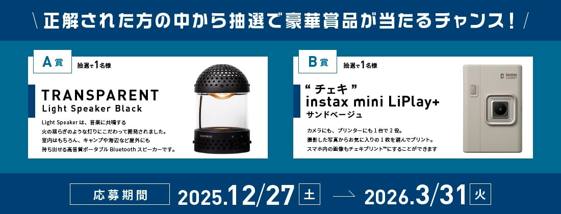B賞 富士フイルム ”チェキ” instax mini LiPlay+ サンドベージュ(1名様)