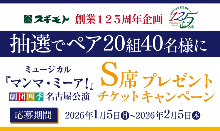 杉本食肉産業株式会社‐劇団四季ミュージカル『マンマ・ミーア!』名古屋公演S席ペアチケットプレゼントキャンペーン