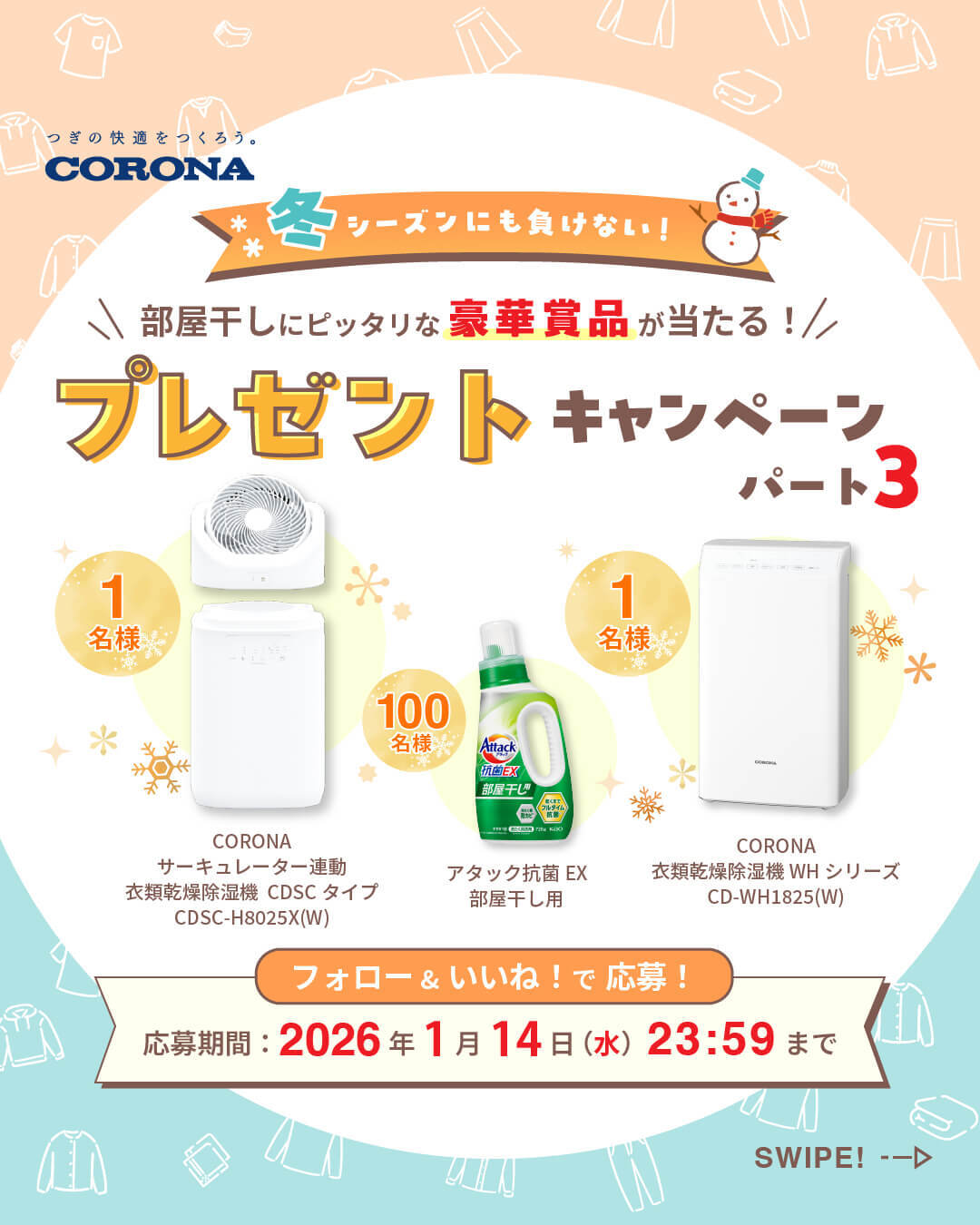 ・CORONA サーキュレーター連動 衣類乾燥除湿機 CDSCタイプ CDSC-H8025X(W) 1名様