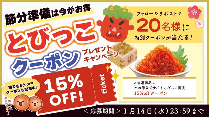 賞品:とびっこがお得な15%OFFクーポン(20名様)