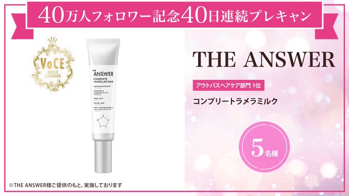賞品:THE ANSWER コンプリートラメラミルク(5名様)