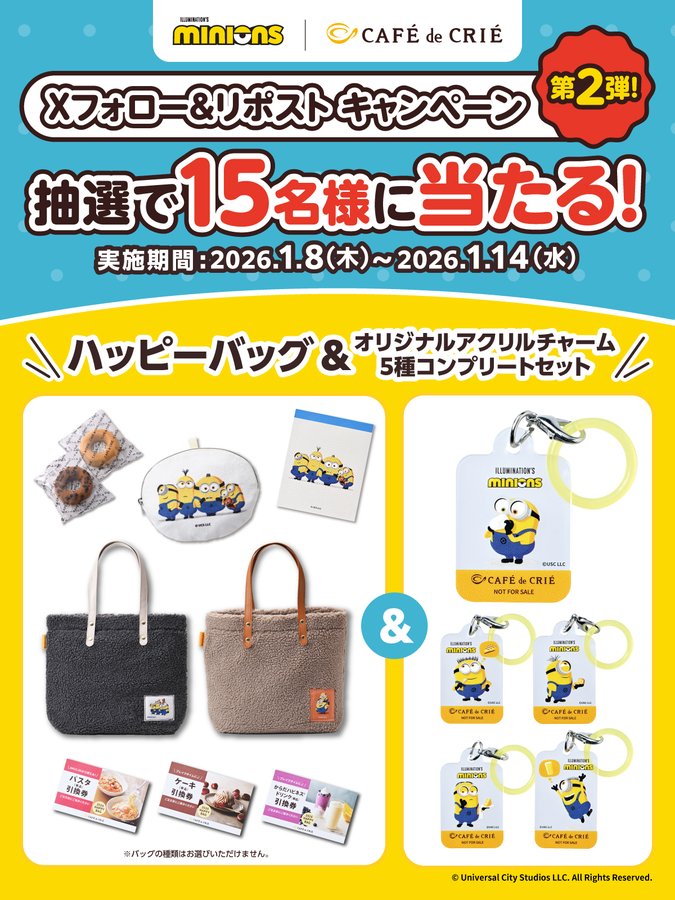 賞品:ハッピーバッグ&オリジナルアクリルチャーム(15名様)