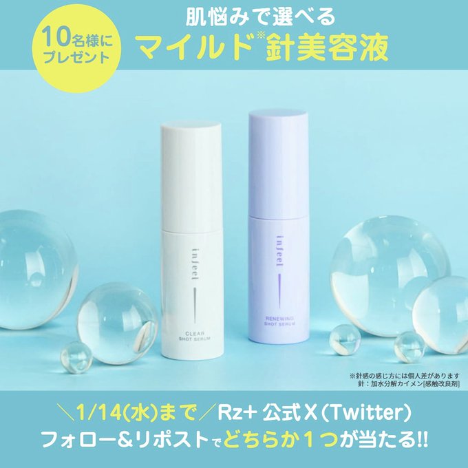賞品:infeel クリアショットセラム、リニューイングショットセラム(10名様)