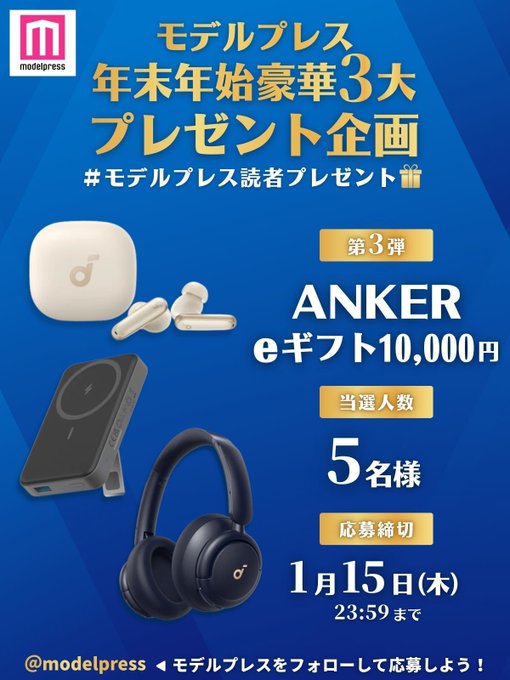 賞品:ANKER選べるカタログeギフト10,000円分(5名様)