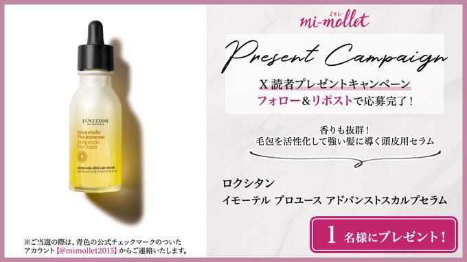賞品:ロクシタン イモーテル プロユース アドバンストスカルプセラム(1名様)