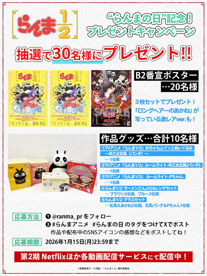 賞品:TVアニメ「らんま1/2」番宣ポスター(30名様)