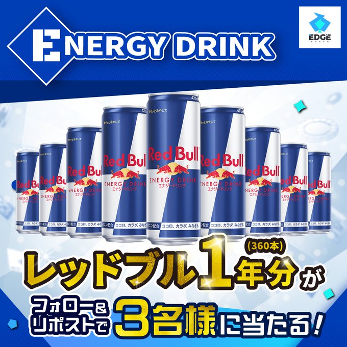 賞品:レッドブル エナジードリンク 1年分相当(360本)(2名様)