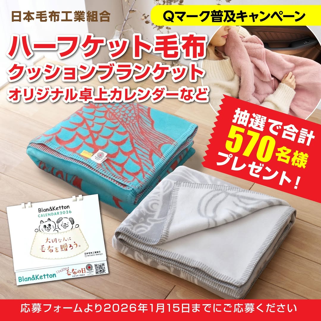 ハーフケット毛布、クッションブランケット、卓上カレンダーを合計570名様にプレゼント
