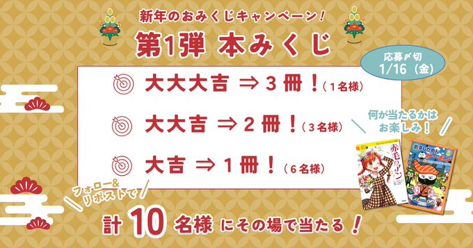 賞品:大大大吉(書籍3冊), 大大吉(書籍2冊), 大吉(書籍1冊)(合計10名様)