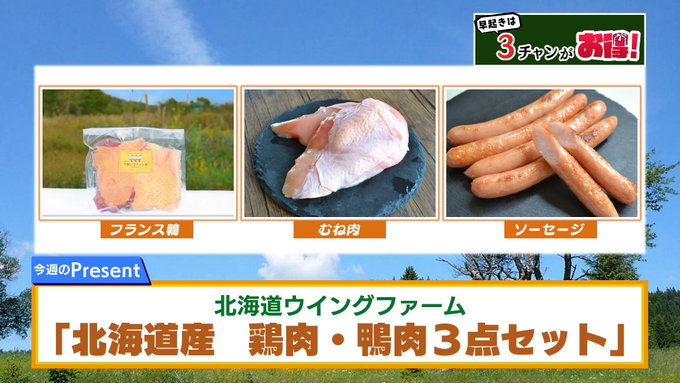 賞品:北海道産 鶏肉・鴨肉3点セット(1名様)
