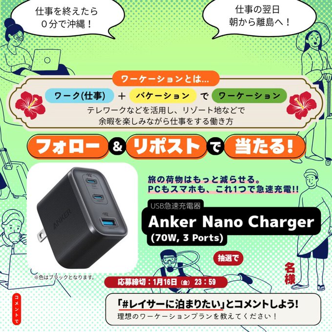 賞品:Anker Nano Charger (70W, 3 Ports)(3名様)