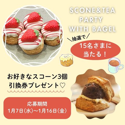 賞品:会場内でご利用いただける「お好きなスコーン3個引換券」(15名様)