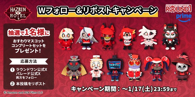 @ROUND1_AMPRIZE @parade_prize をフォロー&キャンペーン対象ポストをリポストしてご応募ください。