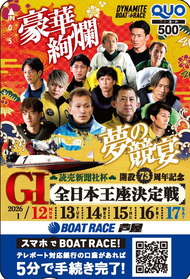 賞品:GI「読売新聞社杯 全日本王座決定戦 開設73周年記念」のクオカード(40名様)