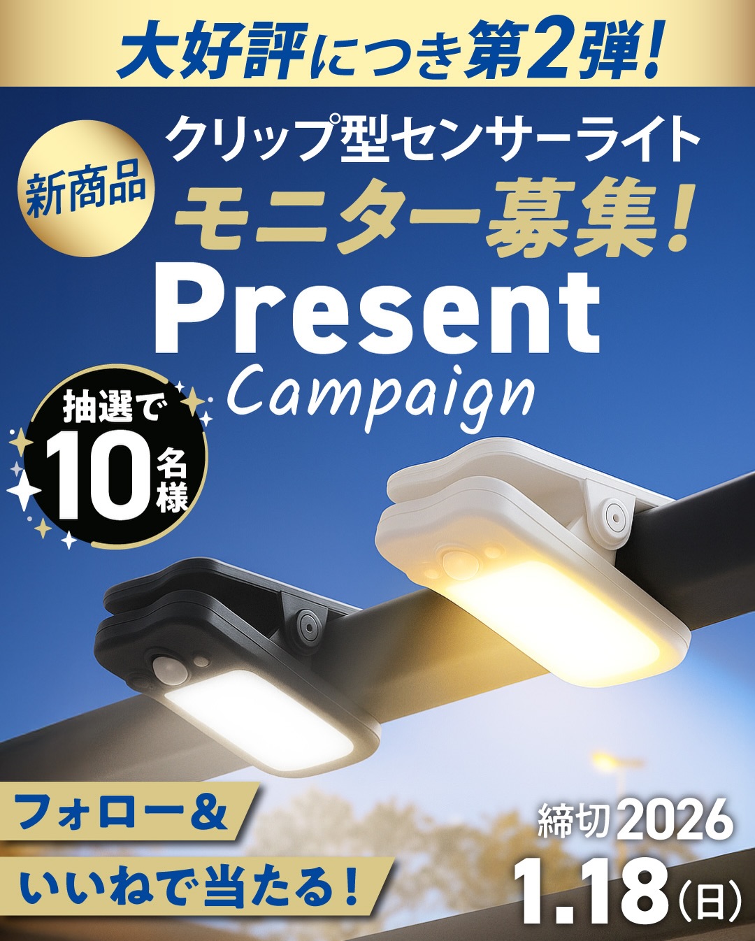 【Instagram懸賞】新商品クリップ型センサーライト クリッパを10名様にプレゼント