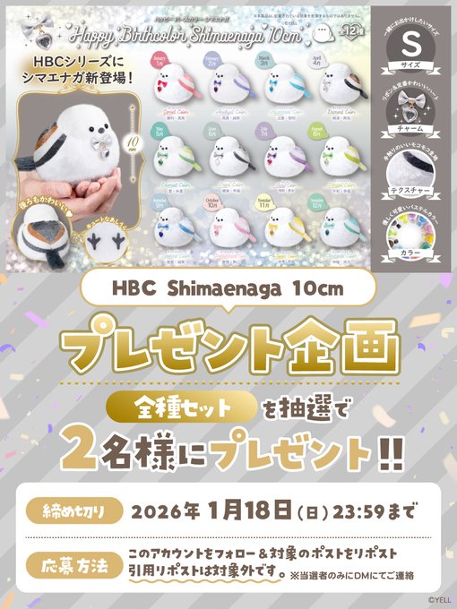 賞品:HBC Shimaenaga 10cm 全種セット(2名様)
