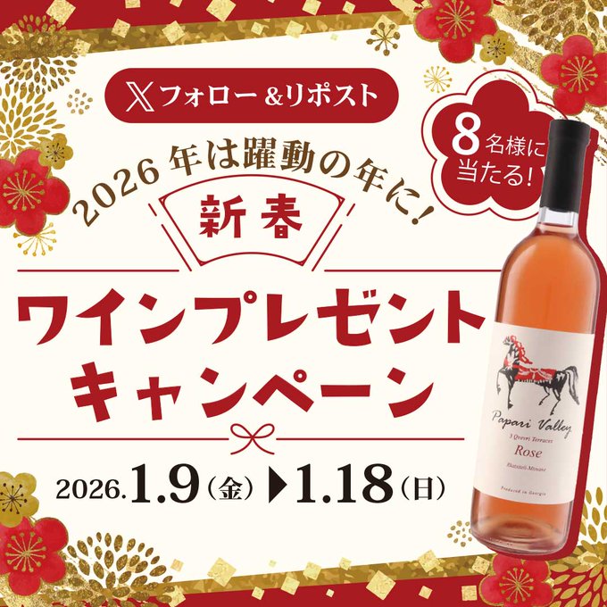 干支である馬が描かれたワインを、令和8年と末広がりにかけて8名様にプレゼント。