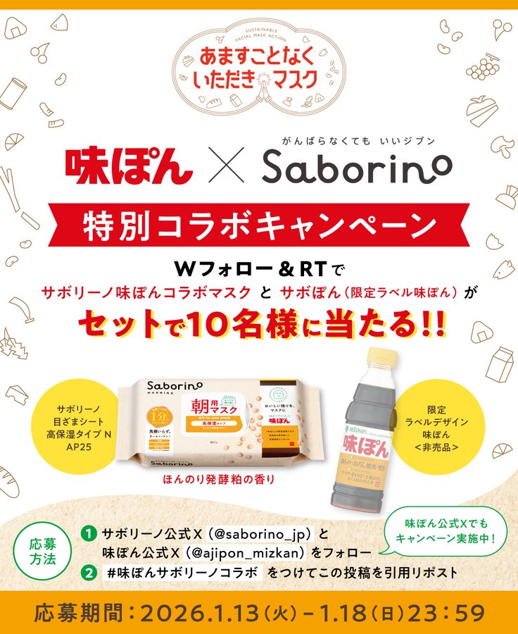 【X懸賞】サボリーノ×味ぽん コラボマスク&サボぽんを10名様にプレゼント