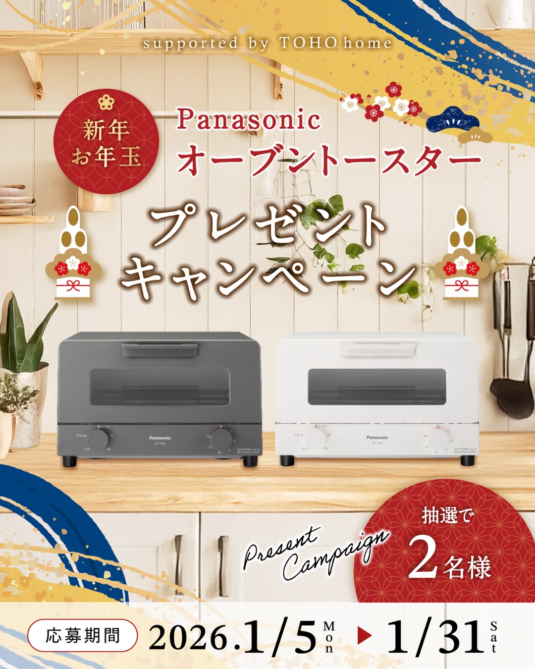 賞品:Panasonic オーブントースター(2名様)