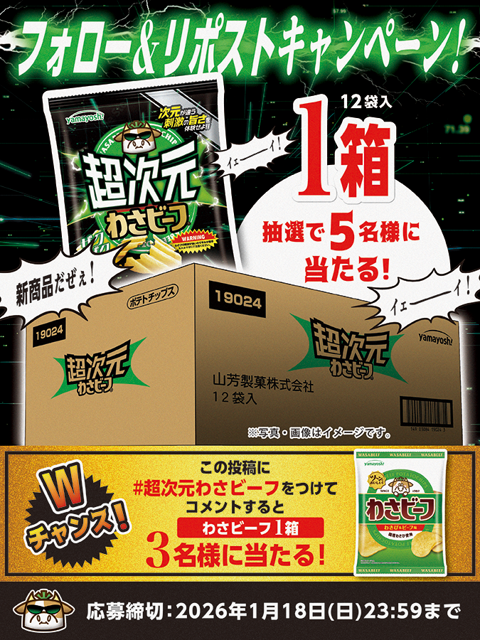 賞品:超次元わさビーフ1箱、わさビーフ1箱(合計8名様)