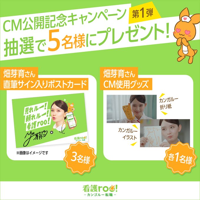 賞品:畑芽育さん直筆サイン入りポストカード、CM使用グッズ(合計5名様)