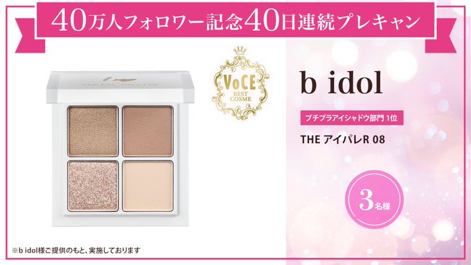 【X懸賞】b idol THE アイパレR 08を3名様にプレゼント 2026.01.16VOCE‐フォロー&リポストキャンペーン 賞品:THE アイパレR 08(3名様) 締切:2026年1月31日(土)公式X(Twitter)アカウントをフォロー&キャンペーン対象ポストをリポストしてご応募ください。※詳細はキャンペーンページにてご確認ください。応募はこちらから