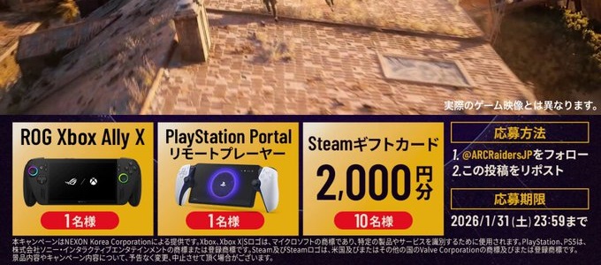 【X懸賞】ROG Xbox Ally X、PlayStation Portal リモートプレーヤー、Steamギフトカード2,000円分を合計12名様にプレゼント