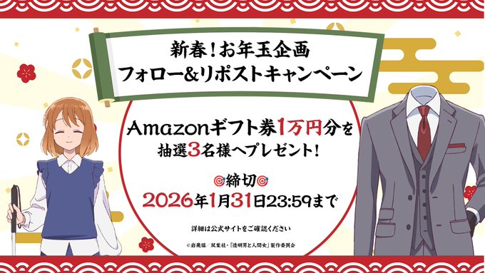 TVアニメ『透明男と人間女〜そのうち夫婦になるふたり〜』‐新春!お年玉企画フォロー&リポストキャンペーン