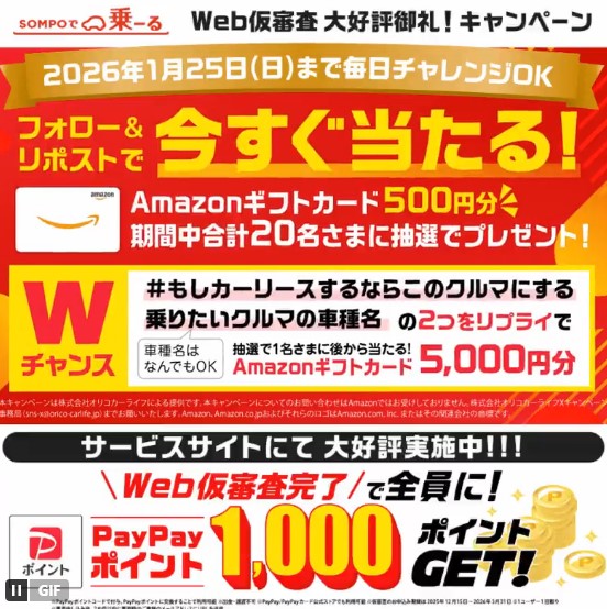 SOMPOで乗ーる‐Web仮審査大好評御礼キャンペーン