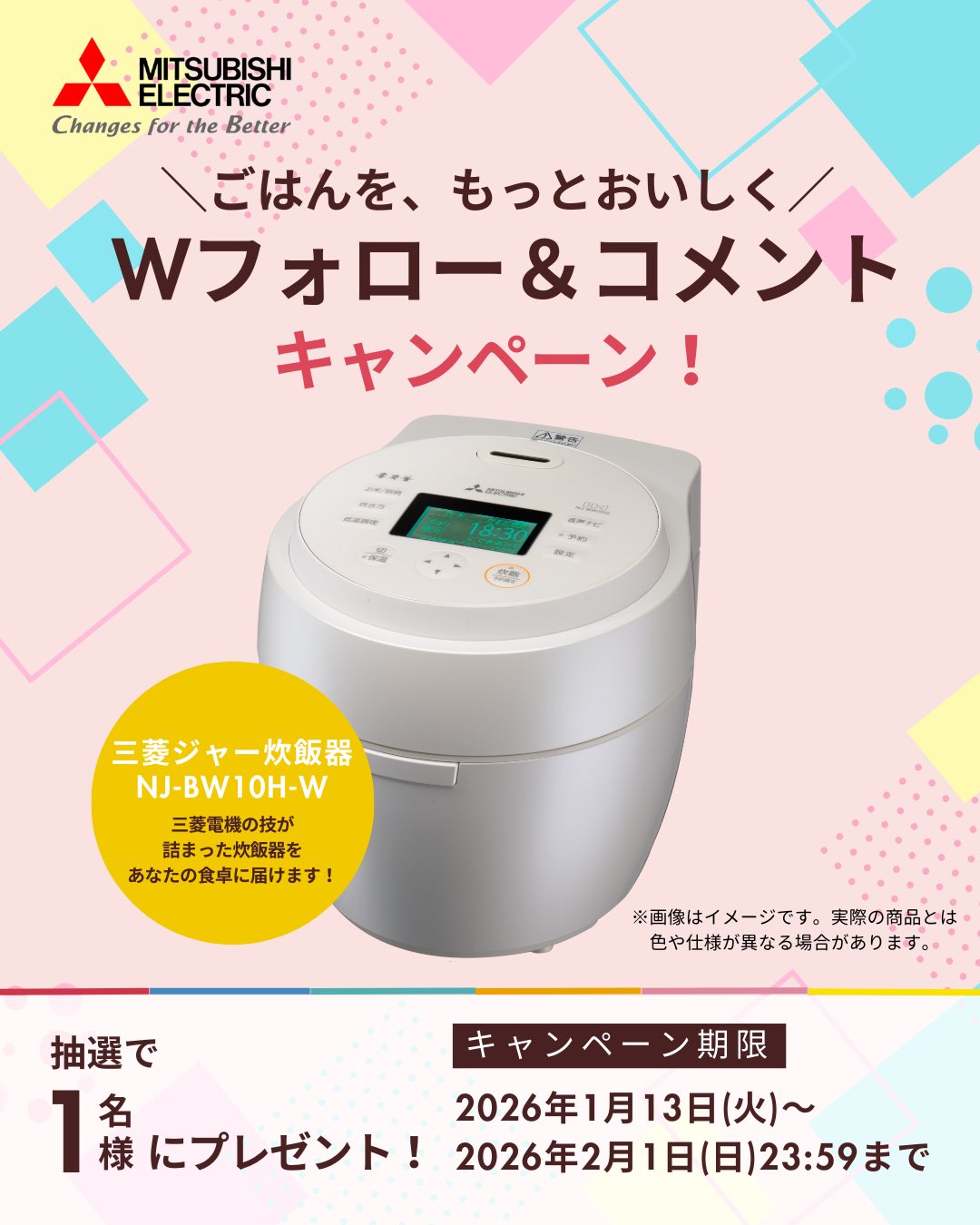 賞品:三菱ジャー炊飯器「本炭釜 紬」NJ-BW10H(1名様)