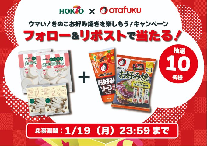 @hokto_officialと@Otafuku_sをフォロー&キャンペーン対象ポストをリポストしてご応募ください。