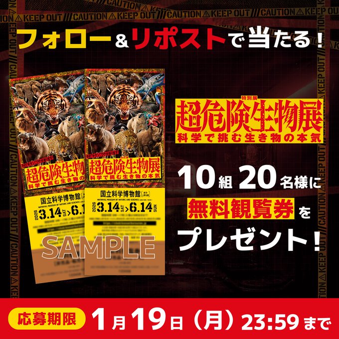 賞品:超危険生物展 無料観覧券(10組20名様)