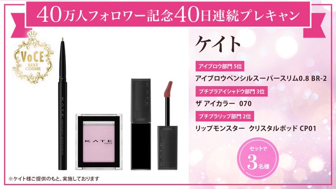 【X懸賞】ケイト3点セットを3名様にプレゼント