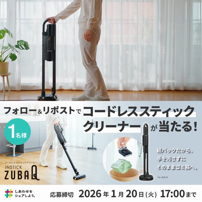 賞品:iNSTICK ZUBAQ(紙パック式)(1名様)