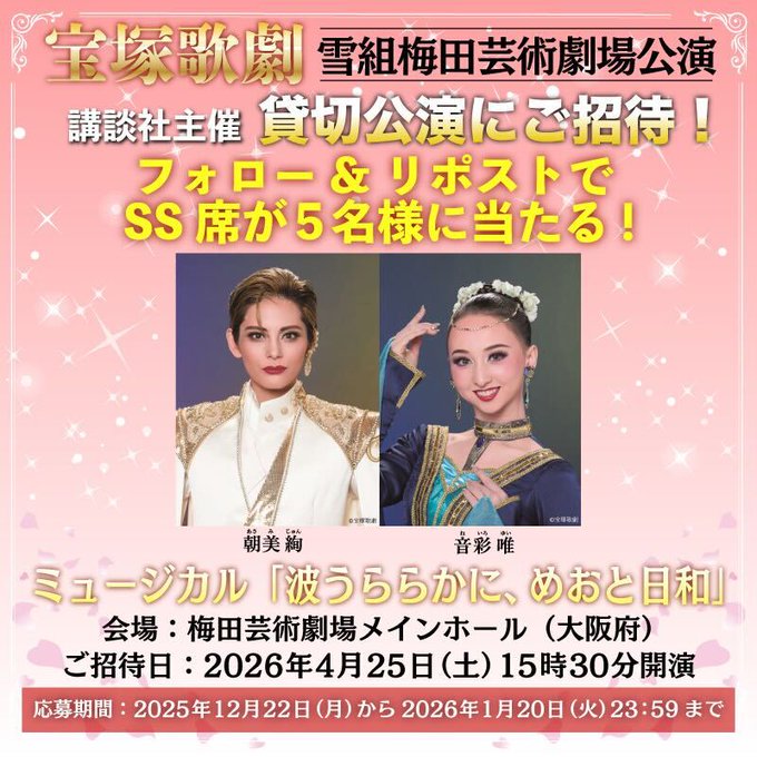 賞品:梅田芸術劇場公演『波うららかに、めおと日和』貸切公演ss席チケット(5名様)