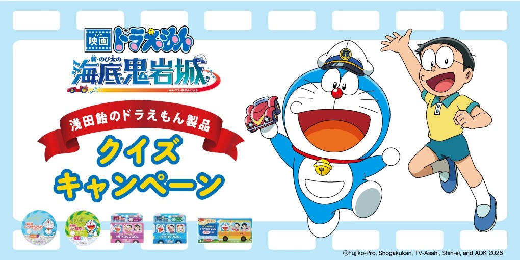 浅田飴のドラえもんシリーズに関するクイズに答えて『映画ドラえもん 新・のび太の海底鬼岩城』映画観賞券(ムビチケ)などをプレゼント!