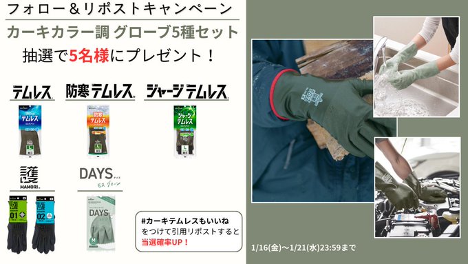 賞品:カーキカラー調グローブ5種セット(5名様)