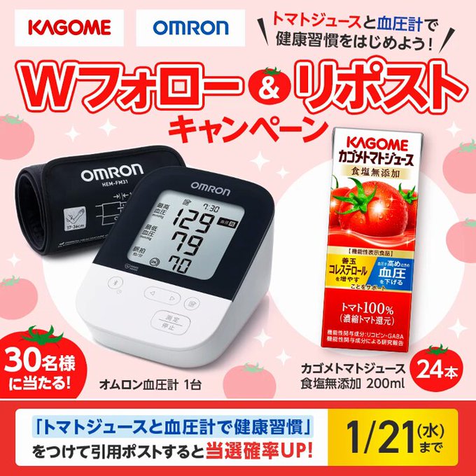 @KAGOME_JPと@omron_hc_prをフォロー&キャンペーン対象ポストをリポストしてご応募ください。