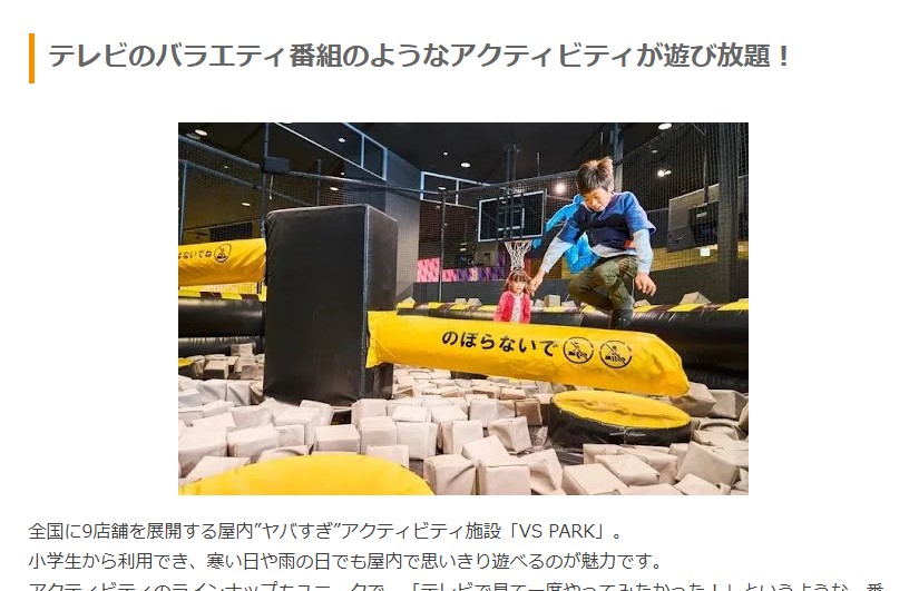 全国9施設対象「VS PARK」無料招待券を20組40名様にプレゼント 2026.01.19いこーよ‐無料招待キャンペーン 賞品:全国9施設対象「VS PARK」無料招待券(20組40名様) 締切:2026年2月14日(土)ご応募には会員登録/ログインが必要です。※詳細はキャンペーンページにてご確認ください。応募はこちらから