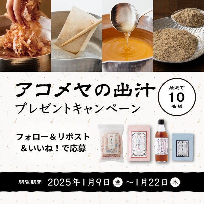 賞品:アコメヤの出汁詰め合わせ(10名様)