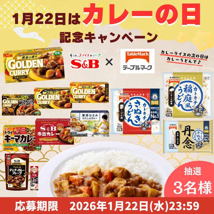 賞品:カレールウ&冷凍うどん(3名様)