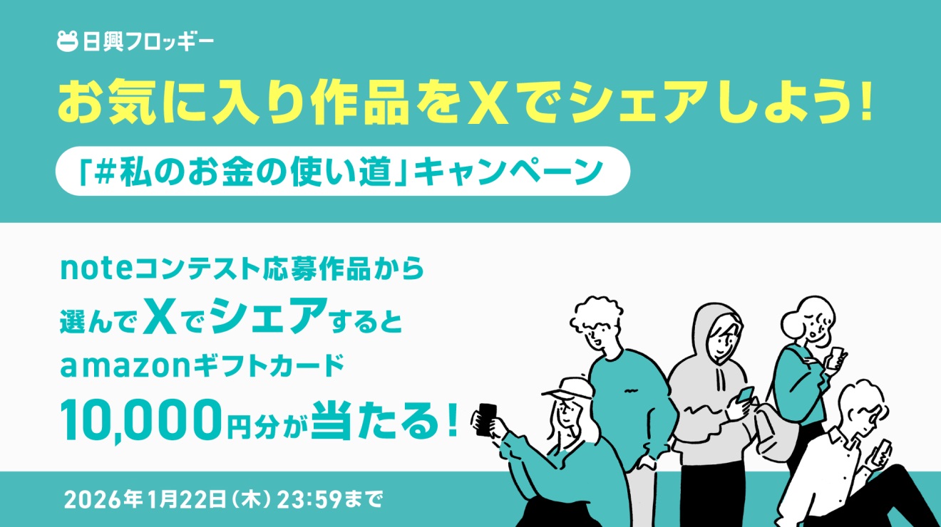 日興フロッギー‐noteのお気に入り作品をXでシェアしよう!「私のお金の使い道」キャンペーン