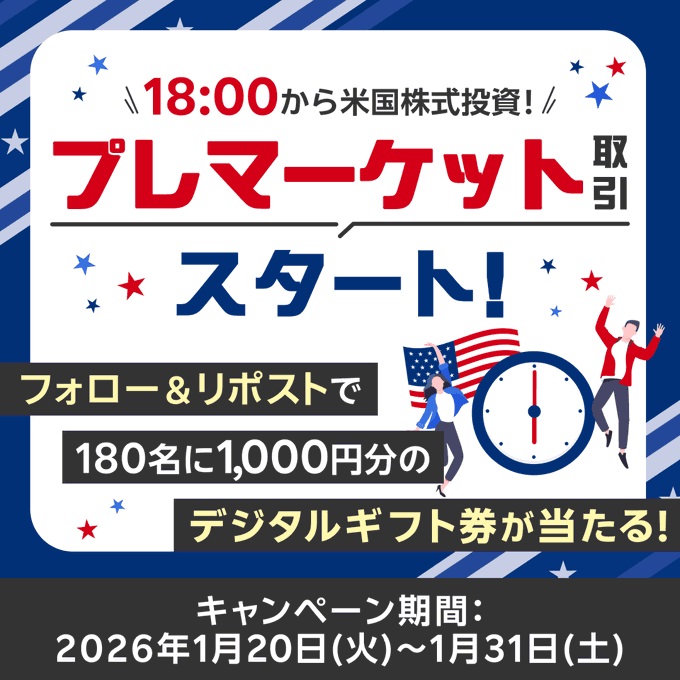 楽天証券‐米国株がもっと身近に!プレマーケット取引開始記念キャンペーン