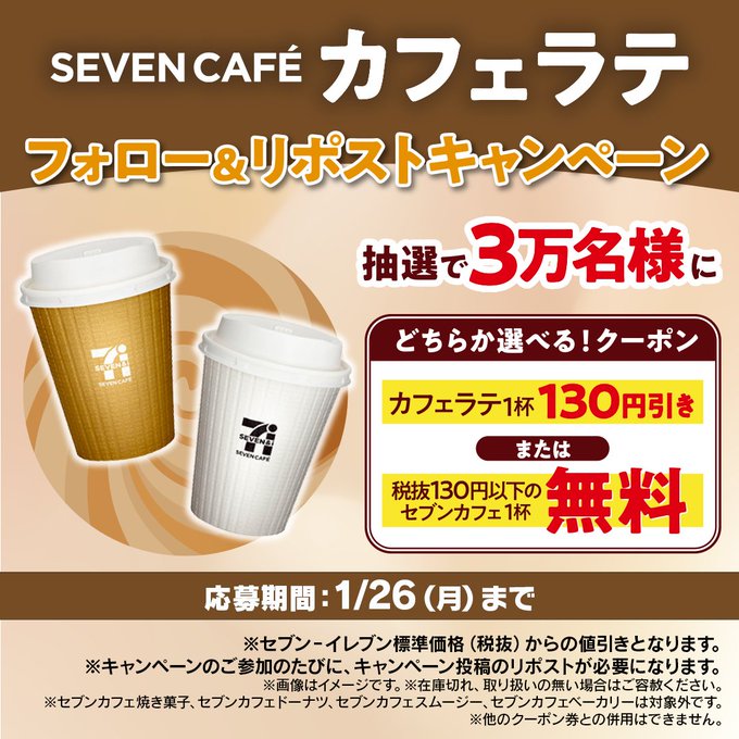 セブン‐イレブン・ジャパン‐SEVEN CAFÉ カフェラテ フォロー&リポストキャンペーン