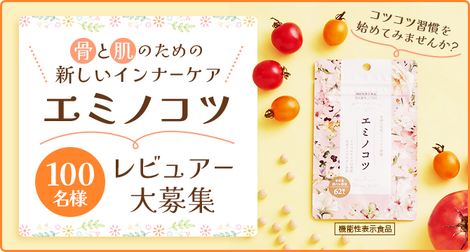 機能性表示食品「エミノコツ」2袋を100名様にプレゼント 2026.01.20わたしにイイコトLaboratory‐「エミノコツ」レビュアー 100名大募集 賞品:機能性表示食品「エミノコツ」2袋(100名様) 締切:2026年1月26日(月)13:00新商品「エミノコツ」のレビュアーを募集中。※詳細はキャンペーンページにてご確認ください。応募はこちらから