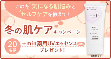 期間中、質問に回答する形でコメントを投稿していただいた方の中から20名様に「+min薬用UVエッセンス(60g)」をプレゼント