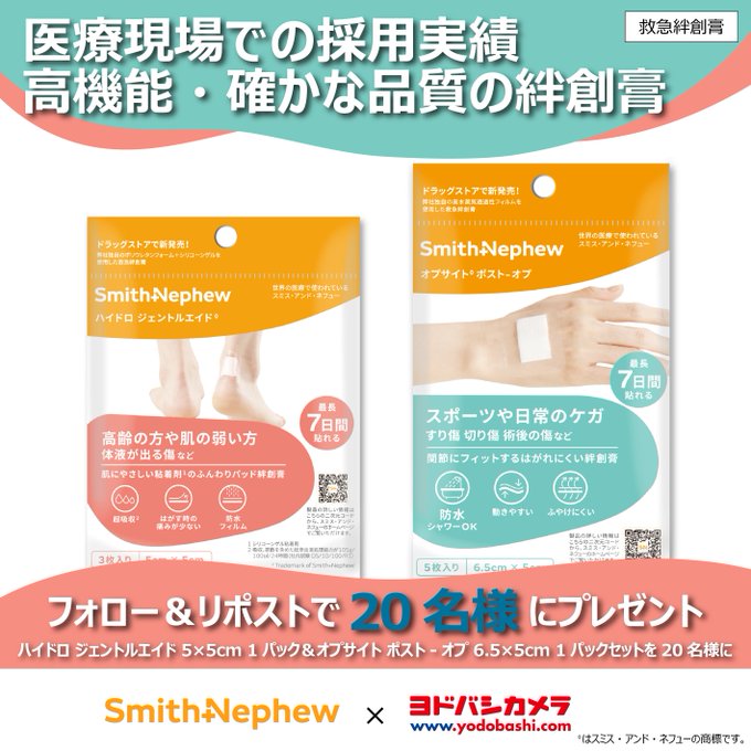 賞品:Smith + Nephew(スミス・アンド・ネフュー)高機能絆創膏2種セット(20名様)